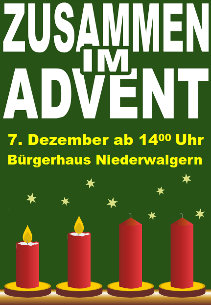Dazu laden wir herzlich ein, am 2. Advent, im Bürgerhaus Niederwalgern.
